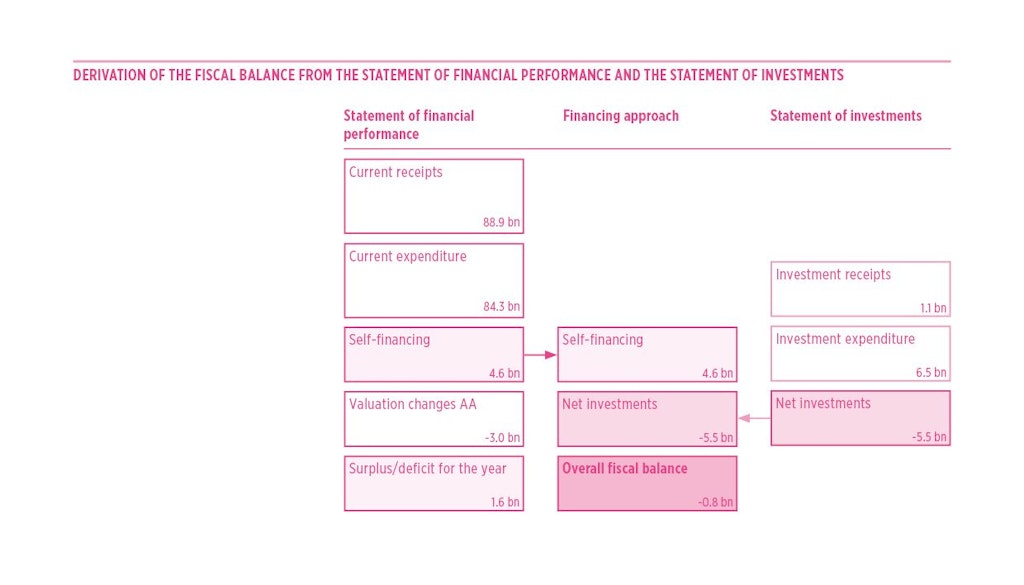 Derivation of the fiscal balance from the statement of financial performance and the statement of investments in CHF bn